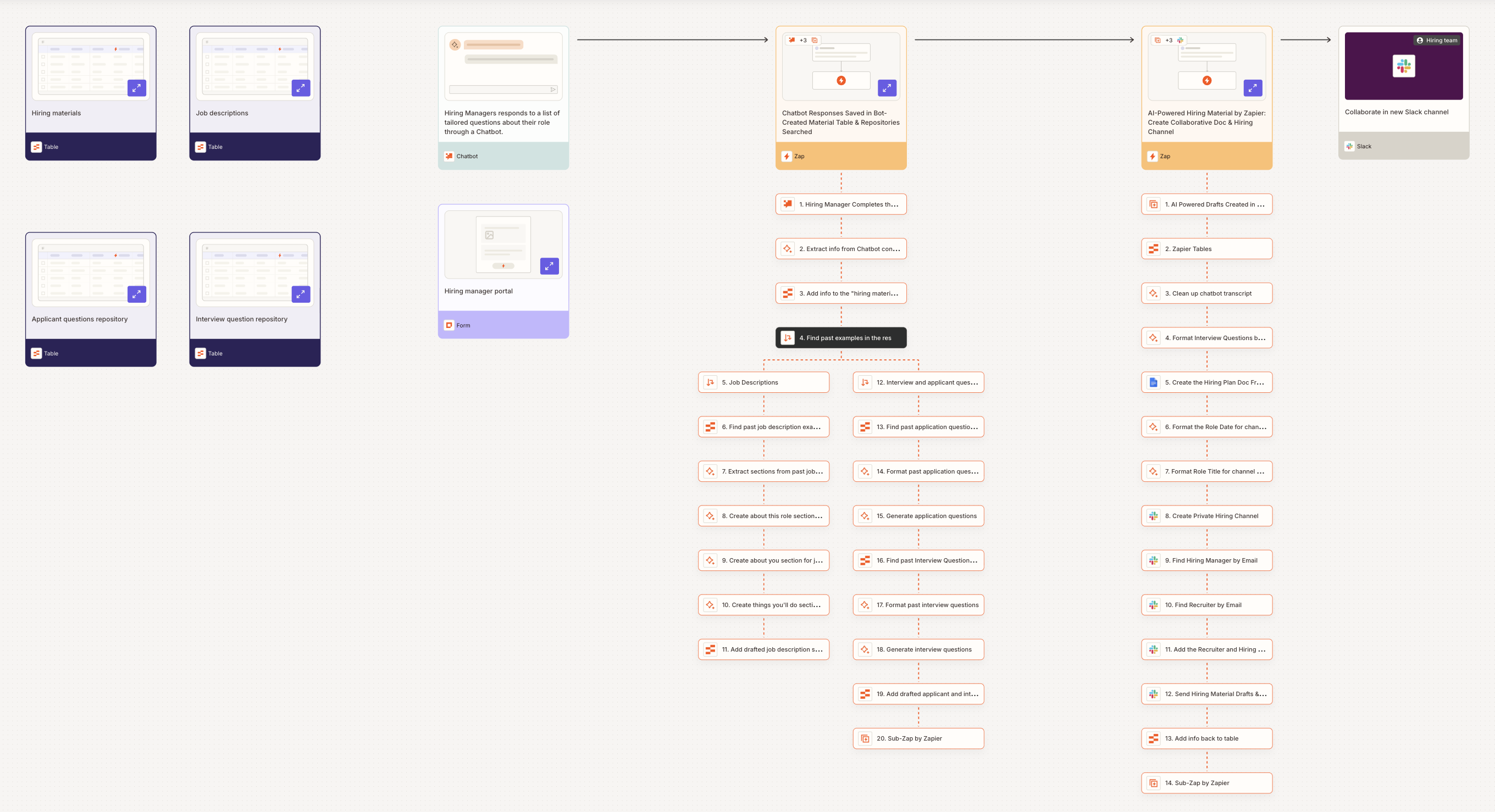 For example, you can use AI and automation to send custom follow-ups to candidates, draft personalized outreach emails from interview transcripts, and automate handoffs so recruiters have more time to focus on actually connecting with candidates. You can also build an AI-supported hiring materials generator to keep your job descriptions and interview rubrics both consistent and fast to implement.